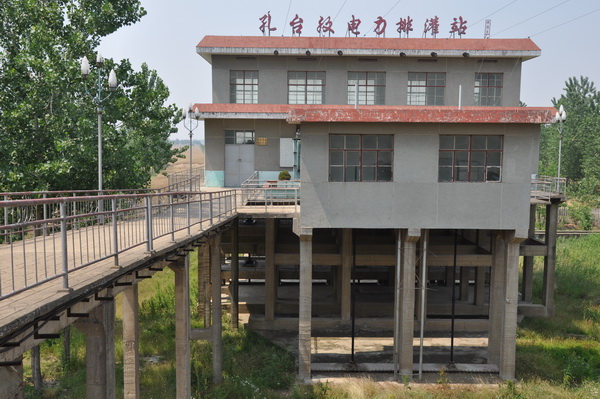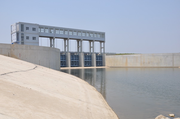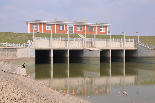 八里河閘  潁上縣八里河閘位于沙潁河潁右右堤,新建八里河閘為6孔涵洞,三孔一聯(lián)??刂屏饔蛎娣e483km2,5年一遇設(shè)計(jì)除澇流量264m3/s,垂直水流方向總